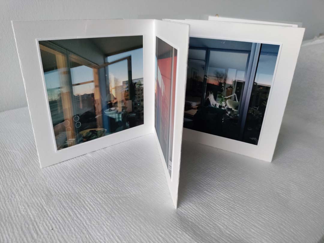 “33 st mf” is a handmade artist’s book about the artist’s home, a studio flat. The title refers to the address. It features photographs of furniture and small things, sun light and shades, and reflections in windows. It is a photography book with no text; a poetic work about the space in which the Birthe Havmøller works.